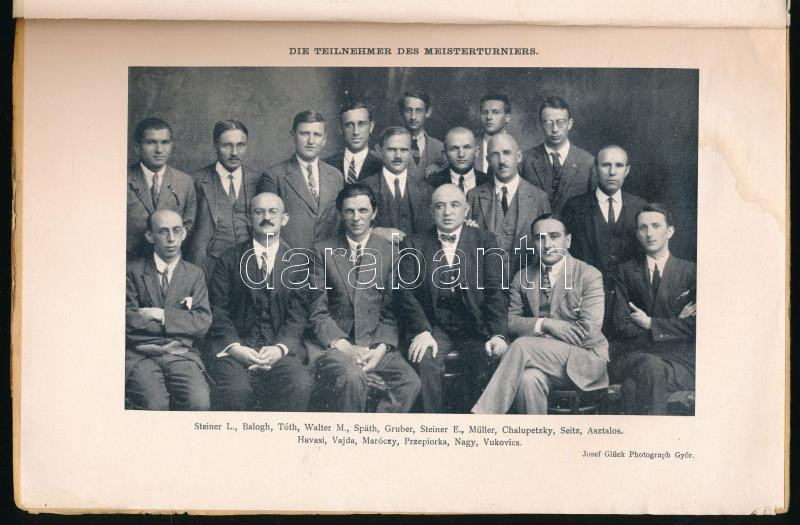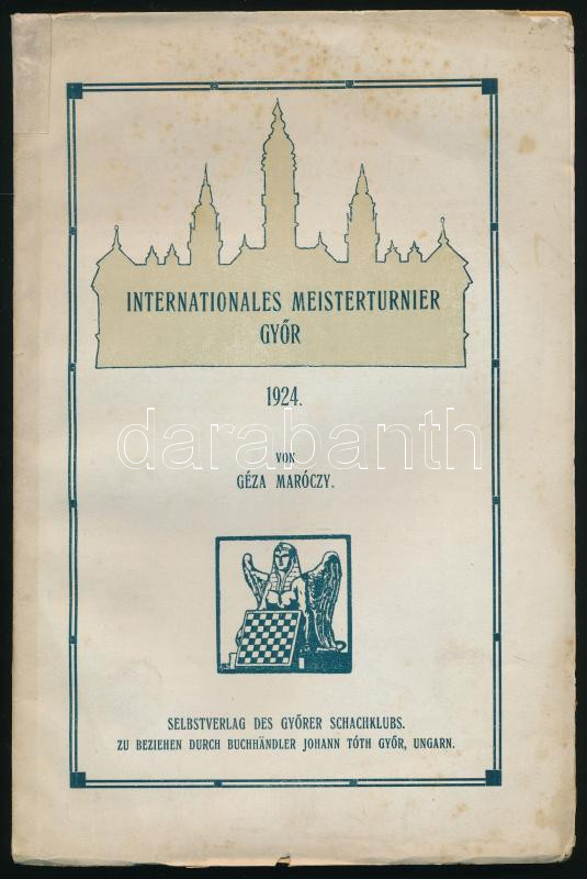 Maróczy Géza: Internationales Mesisterturnier Győr. Győr, Selbstverlag des Győrer Schachklubs. Kiadói papírkötés, kopottas állapotban.