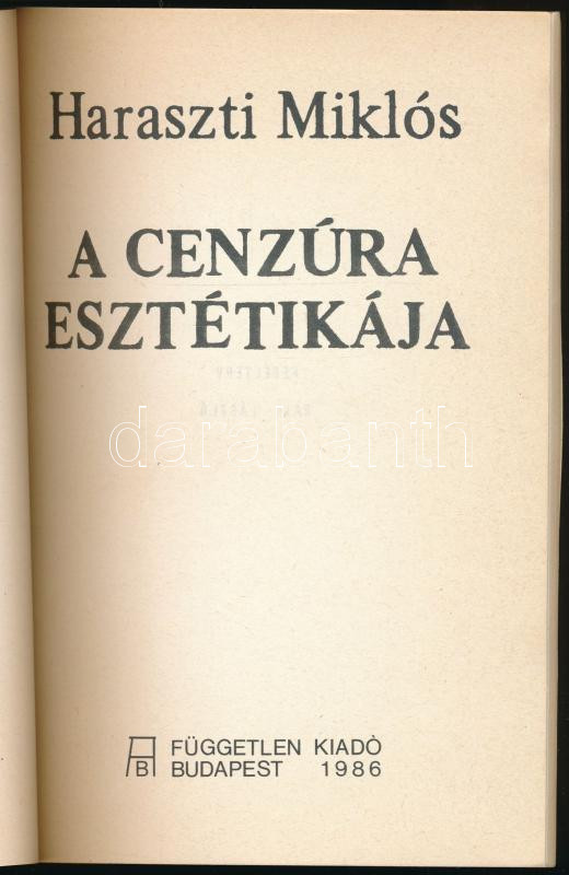 Leírás: Haraszti Miklós: A cenzúra esztétikája. Bp., 1986, Független Kiadó. Kiadói papírkötés, kissé kopottas állapotban.