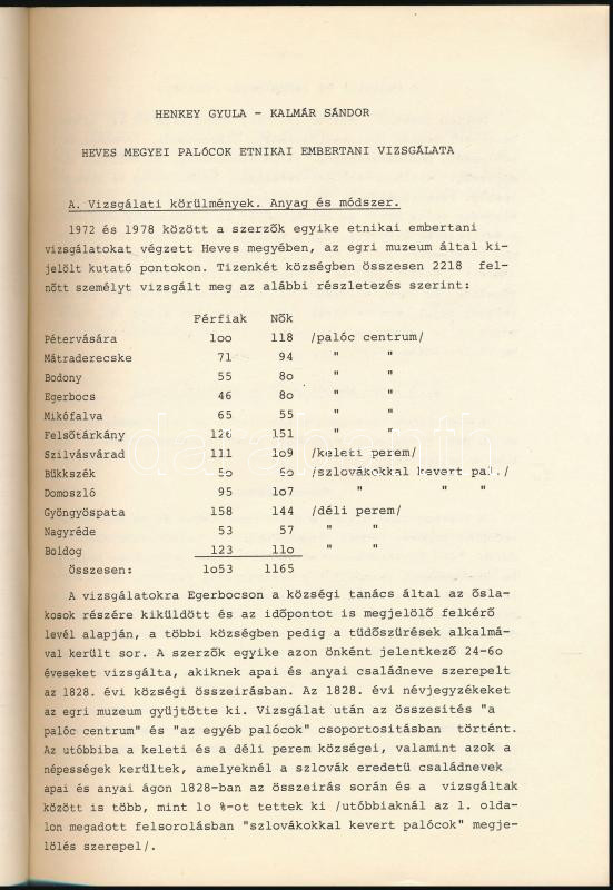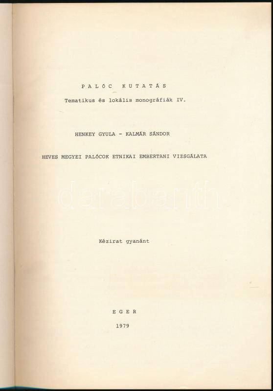 Henkey Gyula-kalmár László: Heves megyei palócok etnikai embertani viz... https://www.darabanth.com/hu/514-Filatelia-kepeslap-numizmatika-mutargy-konyv-papirregiseg-ekszer-aukcio/515.0/Konyvek/Konyvek-Tarsadalomtudomany~624/Henkey-Gyula-kalmar-Laszlo-Heves-megyei-palocok-etnikai-embertani-vizsgalata-Eger-1979-Megj~II3458912