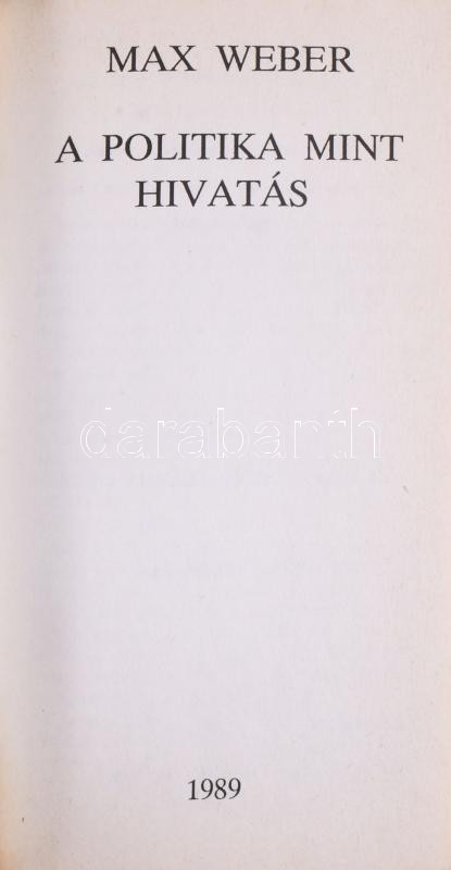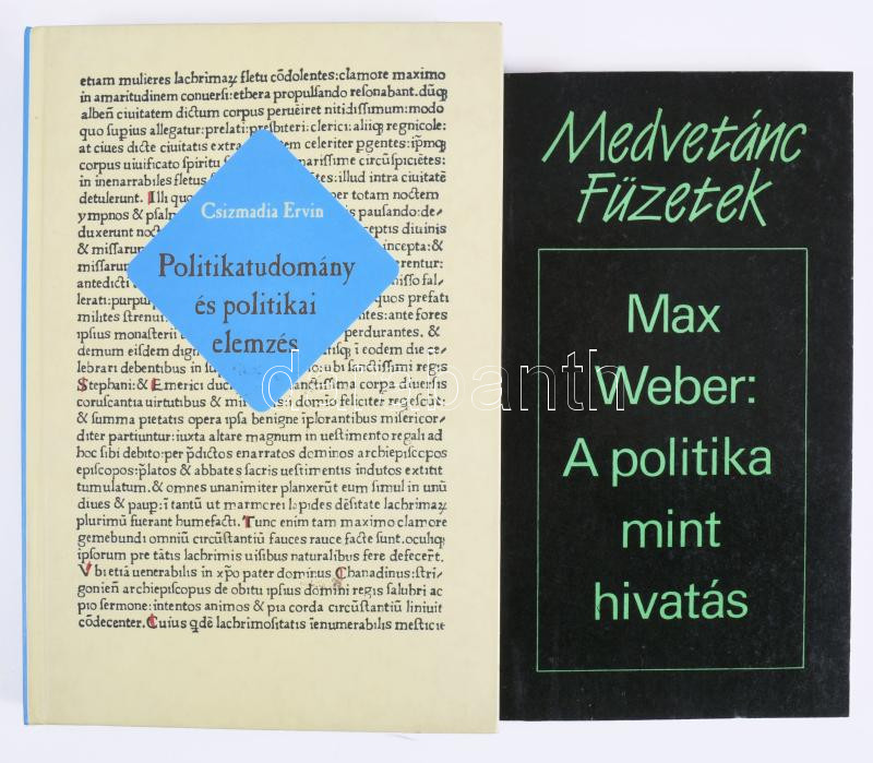 Max Weber: A politika mint hivatás. Medvetánc Füzetek. Bp.,1989.,ELTE - Marx Károly Közgazdaságtudományi Egyetem Művelődéskutató Intézet. Kiadói papírkötés. + Csizmadia Ervin: Politikatudomány és politikai elemzés. Bp., 2008, Századvég. Kiadói kartonált papírkötés.