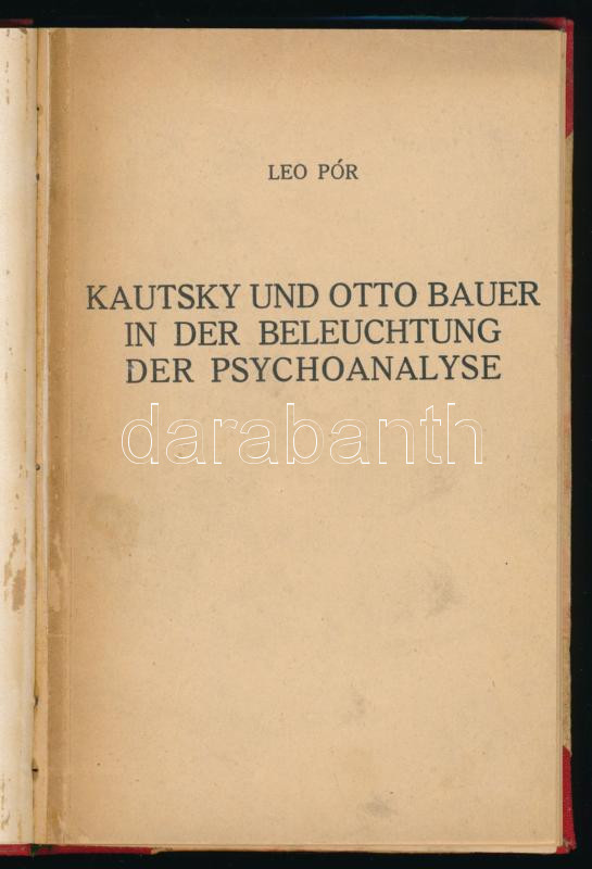 Leírás: Pór, Leo: Kautsky und Otto Bauer in der beleuchtung der Psychoanalyse. Bp., Emerich Faust. 46p. Későbbi félvászon kötésben.