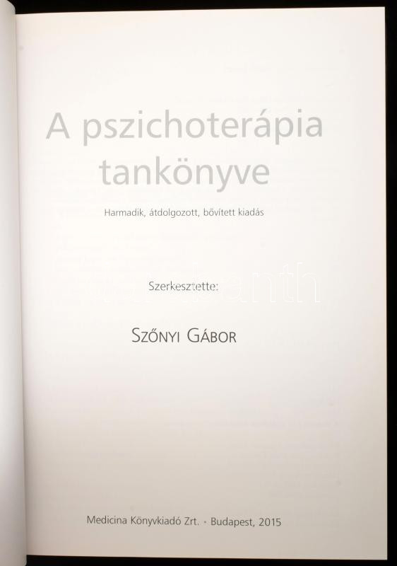 Leírás: Szőnyi Gábor (szerk.): A pszichoterápia tankönyve. Medicina Könyvkiadó, 2015. Kiadói kartonált papírkötés