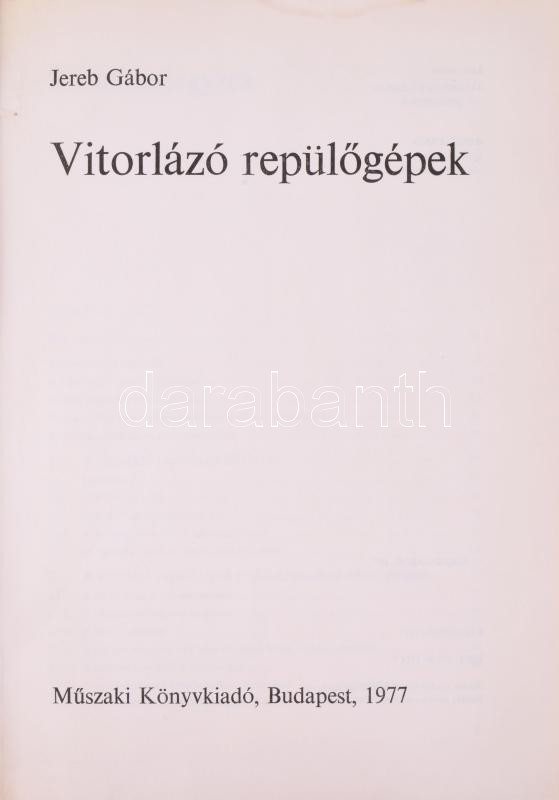 Leírás: 3 db repüléssel kapcsolatos könyv: Angyal László: Hullámzó láthatár. Bp., 1981, Zrínyi. Kiadói egészvászon-kötés. + Jereb Gábor: Vitorlázó repülőgépek. Bp., 1977, Műszaki Könyvkiadó. Kiadói kartonált papírkötés. + Simó Willy: Hogyan lehetek pilóta? Haditechnika fiataloknak. Bp., 1977, Zrínyi. Kiadói tűzött papírkötés, a borítón ázásnyommal.