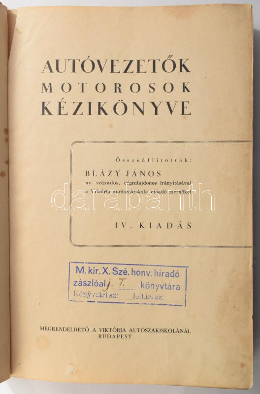 Blázy János: Autóvezetők, motorosok kézikönyve. Összeáll.: - - . Bp., ... https://www.darabanth.com/hu/514-Filatelia-kepeslap-numizmatika-mutargy-konyv-papirregiseg-ekszer-aukcio/515.0/Konyvek/Konyvek-Technika~625/Blazy-Janos-Autovezetok-motorosok-kezikonyve-Osszeall--Bp-1940-Viktoria-Autos~II3475845