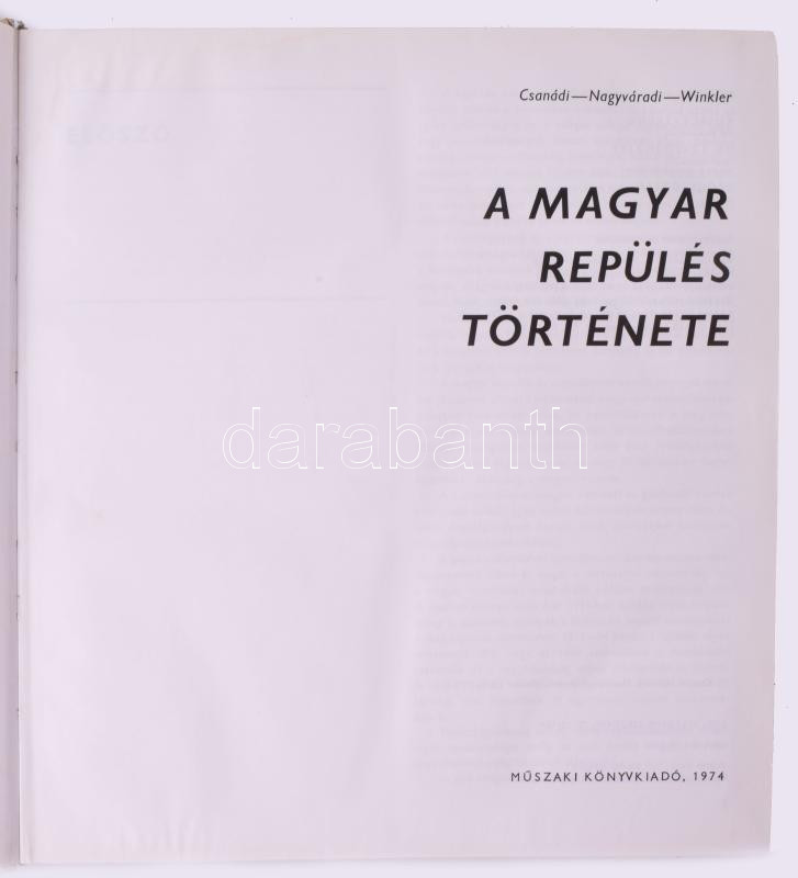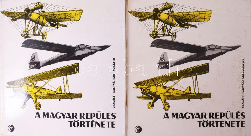 Csanádi - Nagyváradi - Winkler: A magyar repülés története. (Két példány: 1. kiadás, illetve 2., bővített kiadás.) Bp., 1974-1977, Műszaki Könyvkiadó. Kiadói kartonált papírkötés, az 1. kiadás kissé viseltes állapotban.