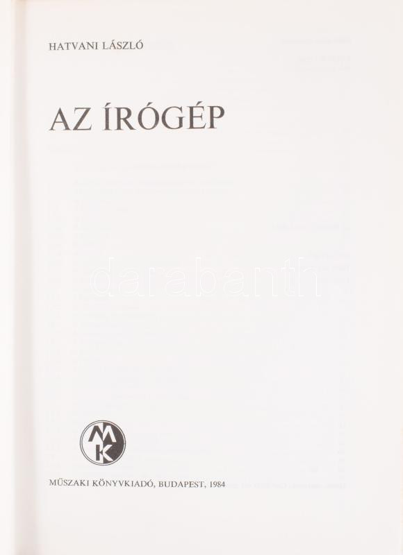 Hatvani László: Az írógép. Ipari szakkönyvtár. Bp., 1984, Műszaki. Számos fekete-fehér ábrával illusztrálva. Kiadói kartonált papírkötés, kissé kopott borítóval.