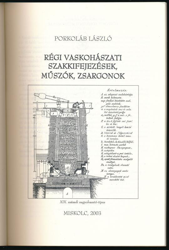 Porkoláb László: Régi vaskohászati szakkifejezések, műszók, zsargonok.... https://www.darabanth.com/hu/514-Filatelia-kepeslap-numizmatika-mutargy-konyv-papirregiseg-ekszer-aukcio/515.0/Konyvek/Konyvek-Technika~625/Porkolab-Laszlo-Regi-vaskohaszati-szakkifejezesek-muszok-zsargonok-Miskolc-2003-Kiado~II3475787