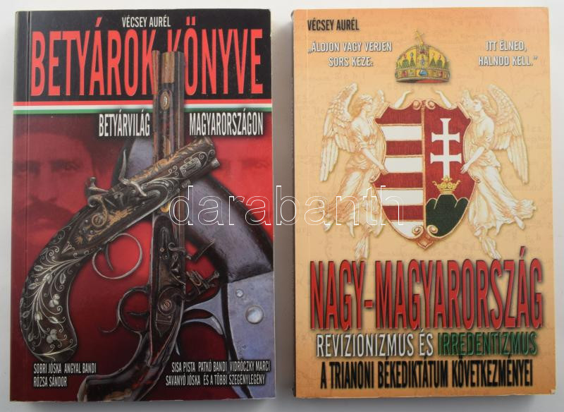 Leírás: Vécsey Aurél 2 műve: Nagy-Magyarország. A revizionizmus és irredentizmus története.; Betyárok könyve. Betyárvilág Magyarországon. Bp.,2014, Vagabund. Kiadói papírkötés.