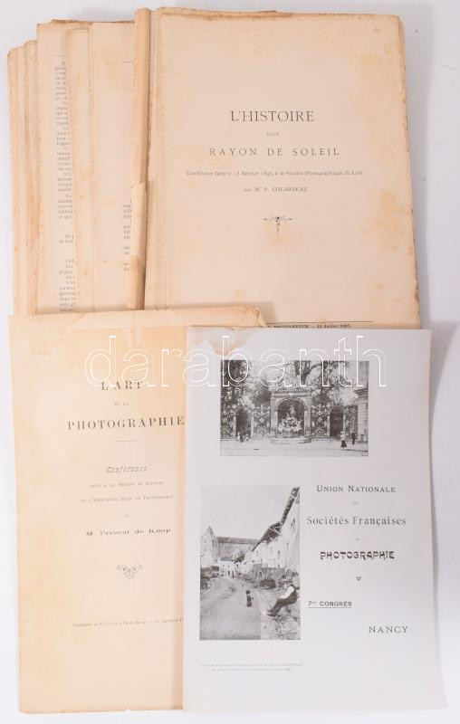 Leírás: ca 1890-1900 Fotótörténeti és fotótechnikai tanulmányok 15 db nyopmtatvány, sok illusztrációval, francia nyelven.