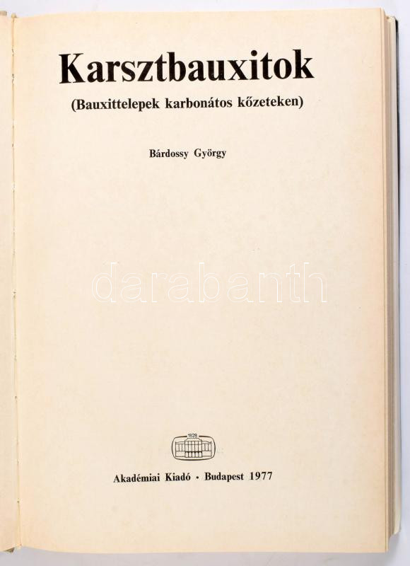 Bárdossy György: Karsztbauxitok (Bauxittelepek karbonátos kőzeteken). ... https://www.darabanth.com/hu/514-Filatelia-kepeslap-numizmatika-mutargy-konyv-papirregiseg-ekszer-aukcio/515.0/Konyvek/Konyvek-Termeszettudomany-medicina~622/Bardossy-Gyorgy-Karsztbauxitok-Bauxittelepek-karbonatos-kozeteken-Bp-1977-Akademiai-Kia~II3462221