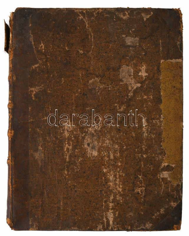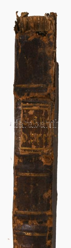 Korabeli egészbőr-kötésben, kopott borítóval, sérült gerinccel és borítóval, hiányzó címlappal, egy táblán szakadás és gyűrődés, foltos lapokkal.