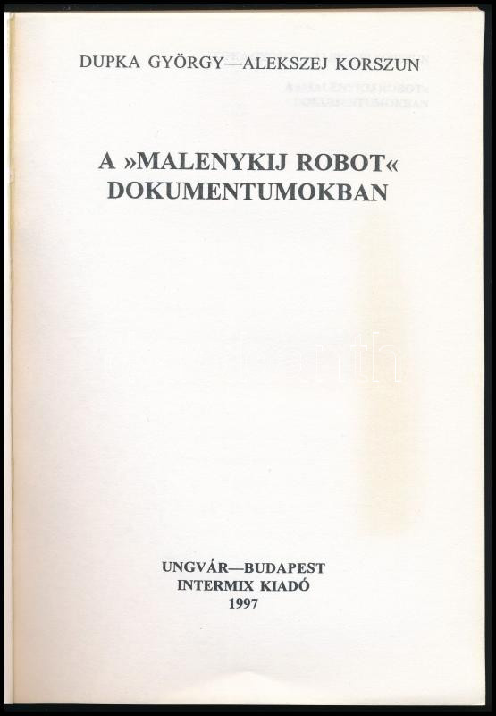 Dupka György - Alekszej Korszun: A "Malenykij Robot" dokumen... https://www.darabanth.com/hu/514-Filatelia-kepeslap-numizmatika-mutargy-konyv-papirregiseg-ekszer-aukcio/515.0/Konyvek/Konyvek-Tortenelem~617/Dupka-Gyorgy-Alekszej-Korszun-A-Malenykij-Robot-dokumentumokban-Karpataljai-Magyar-Konyvek~II3482040