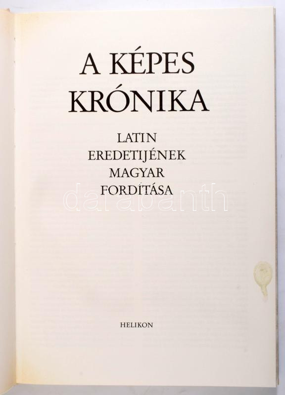 Képes Krónika I-II. kötet. [Latin nyelvű hasonmás és magyar nyelvű tanulmánykötet.] A latin eredeti magyar fordítása, Bellus Ilona munkája, Kristó Gyula, Dercsényi Dezső, Csapodiné Gárdonyi Klára kísérőtanulmányaival.