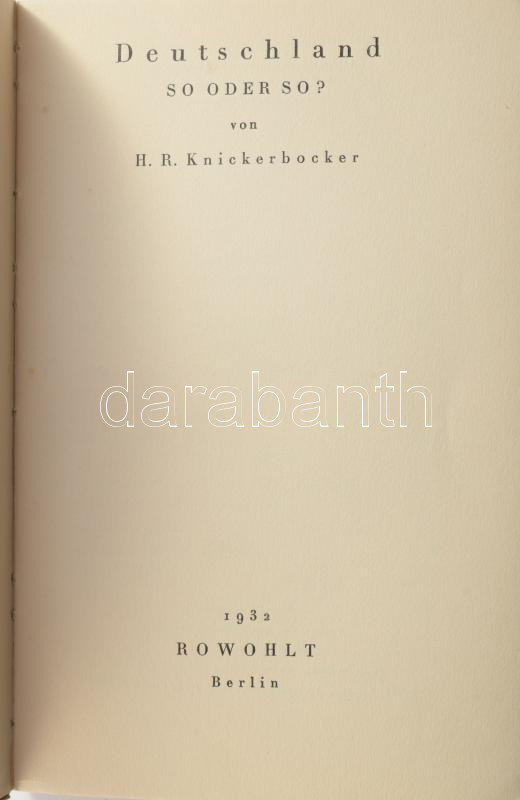 Knickerbocker, [Hubert Renfro]: Deutschland so oder so? Berlin, 1932, ... https://www.darabanth.com/hu/514-Filatelia-kepeslap-numizmatika-mutargy-konyv-papirregiseg-ekszer-aukcio/515.0/Konyvek/Konyvek-Tortenelem~617/Knickerbocker-Hubert-Renfro-Deutschland-so-oder-so-Berlin-1932-Rowohlt-Xplus2plus231plus5-p-Nem~II3476280