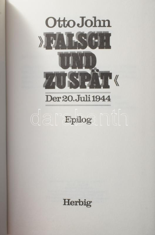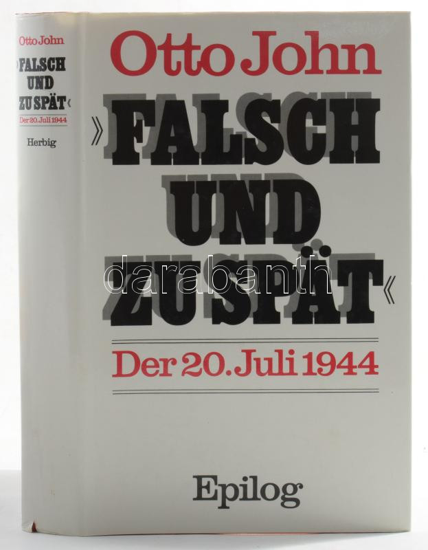 Otto John: "Falsch und zu spät". Der 20. Juli 1944. Epilog. München-Berlin, 1984, F. A. Herbig. Német nyelven. Kiadói egészvászon-kötés, kiadói papír védőborítóban.
