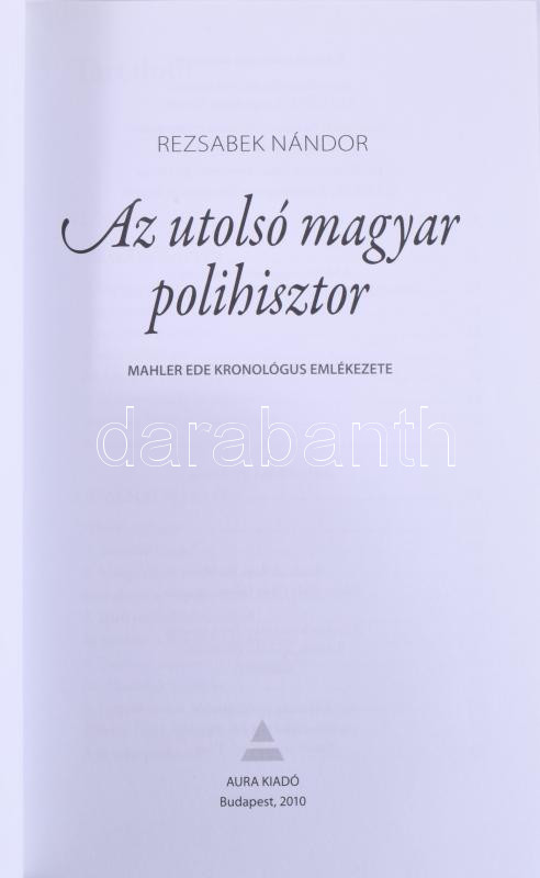 Rezsabek Nándor: Az utolsó magyar polihisztor. Mahler Ede kronológus e... https://www.darabanth.com/hu/514-Filatelia-kepeslap-numizmatika-mutargy-konyv-papirregiseg-ekszer-aukcio/515.0/Konyvek/Konyvek-Tortenelem~617/Rezsabek-Nandor-Az-utolso-magyar-polihisztor-Mahler-Ede-kronologus-emlekezete-Bp-2010-Aura~II3483360