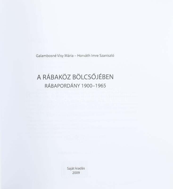 Rábapordány 1900-1965... https://www.darabanth.com/hu/514-Filatelia-kepeslap-numizmatika-mutargy-konyv-papirregiseg-ekszer-aukcio/515.0/Konyvek/Konyvek-Utazas-helytortenet~614/3Cem3EGalambosne-Visy-Maria3Cem3E-Horvath-Imre-Szaniszlo3Cbr-3E-Rabapordany-1900-1965-A-Raba~II3423838