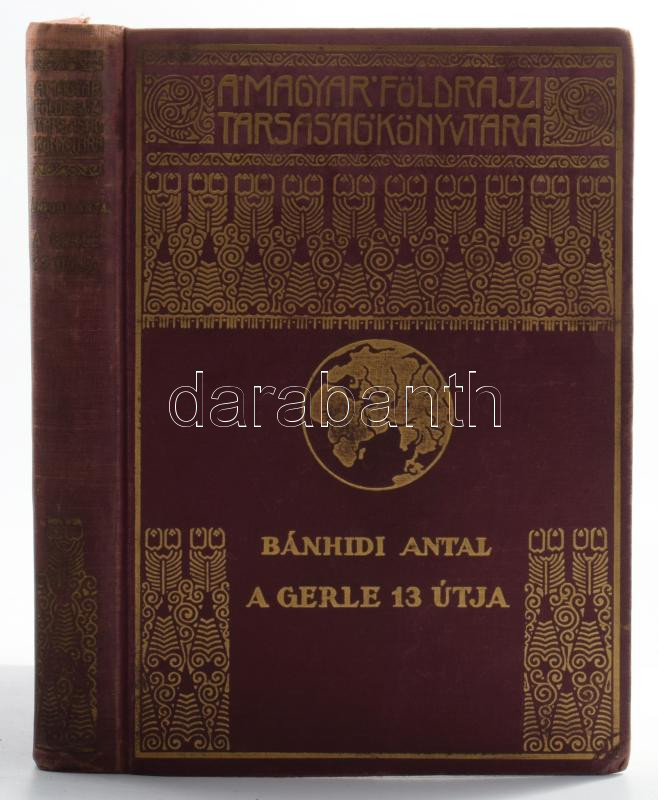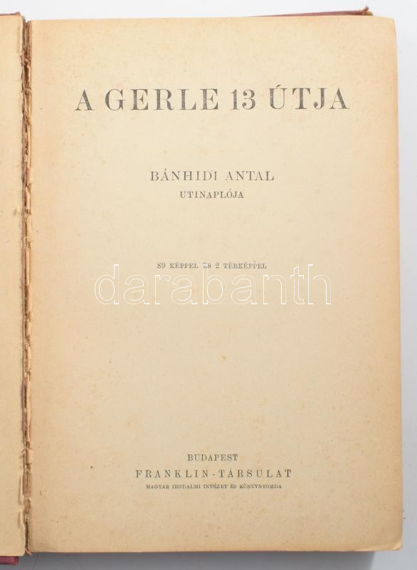Bánhidi Antal: A Gerle 13 útja. Bánhidi Antal útinaplója. 89 képpel és 2 térképpel. A Magyar Földrajzi Társaság könyvtára. Bp., [1936.], Franklin, 201 p. +4 (2 térkép,1 rajz, 1 grafikon) t. +1 p. + 24 (fekete-fehér képtáblák) t. Első kiadás.
