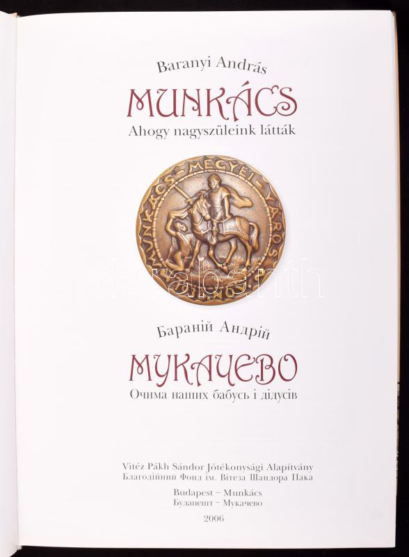 Baranyi András: Munkács, ahogy nagyszüleink látták. Szerk.: - -. Katona Tamás előszavával. [Bp - Munkács], 2007., Vitéz Pákh Sándor Jótékonysági Alapítvány. Bilingvis, magyar, ukrán nyelven. Gazdag képanyaggal illusztrált. Kiadói kartonált papírkötés
