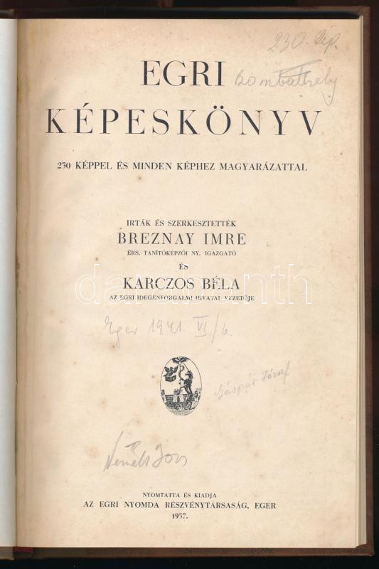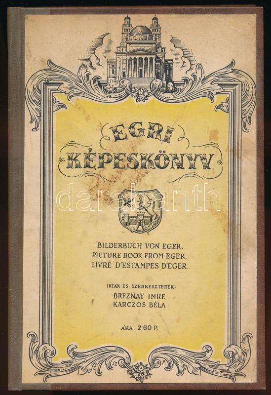 Breznay Imre - Karczos Béla: Egri képeskönyv. Eger, 1937, Egri Nyomda Részvénytársaság. Újrakötött félvászon kötés, ráragasztva a régi borító, kopottas állapotban.