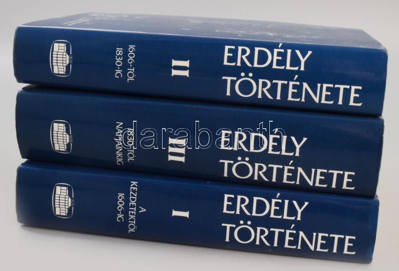 Leírás: Erdély története napjainkig I-III. kötet. I.: A kezdetektől 1606-ig. II.: 1606-tól 1830-ig. III.: 1830-tól napjainkig. Szerk.: Köpeczi Béla. Bp., 1988, Akadémiai Kiadó. Harmadik kiadás. Kiadói egészvászon kötésben, karcos kiadói papírborítóban.
