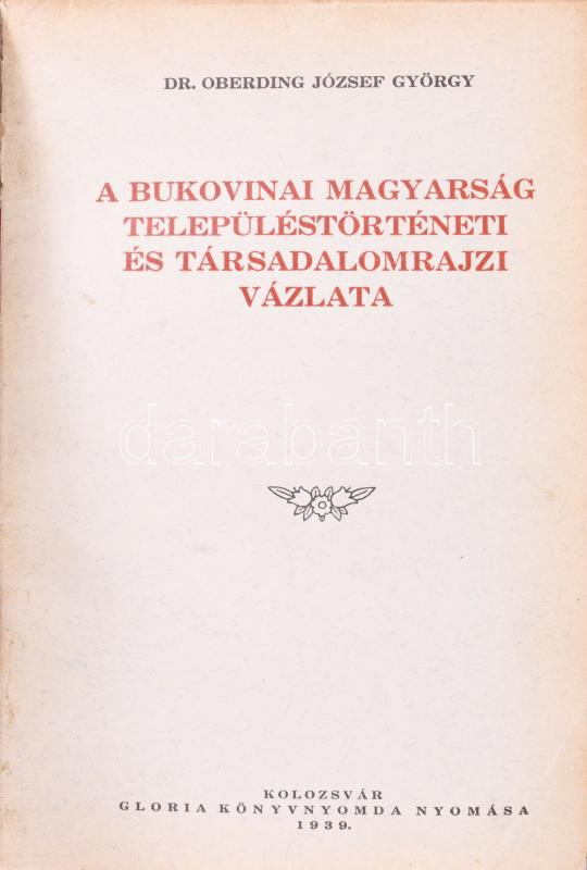 Óberding József.: A bukovinai magyarság településtörténeti és társadalomrajzi vázlata. Kolozsvár, 1939., Gloria, 32+4 p. Bekötött eredeti papírborítóval.; Hozzákötve:
