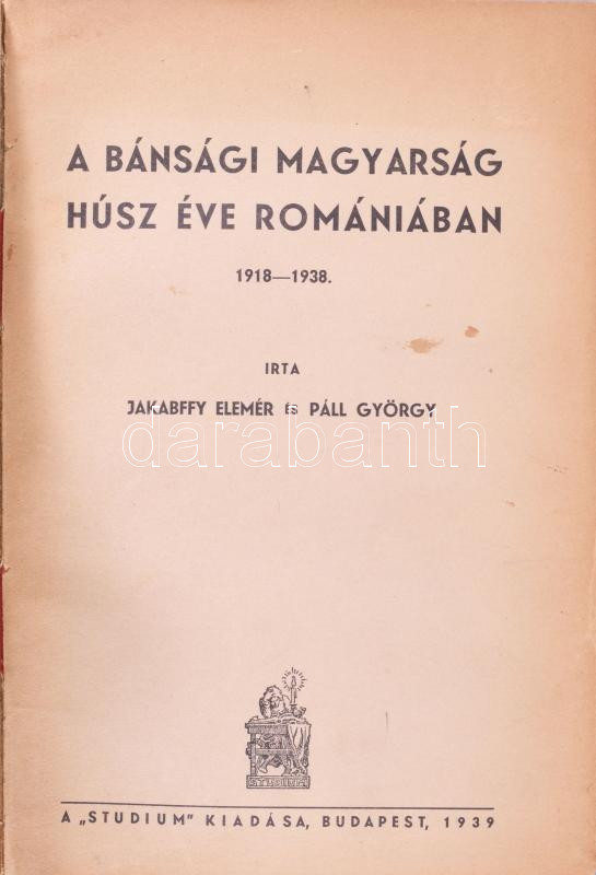 Jekabbfy Elemér - Páll György: A bánsági magyarság húsz éve Romániában 1918-1938. Bp., 1939., Studium, 240p. Bekötött eredeti papírborítóval.;