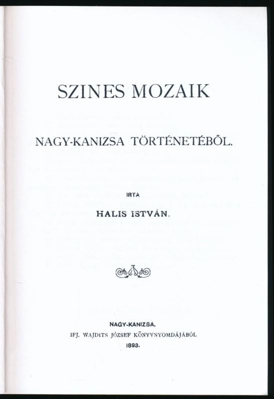 Leírás: Halis István: Színes mozaik Nagy-Kanizsa történetéből. Nagykanizsa, 2017, Halis Városi Könyvtár, 140 p. Az 1893-as reprint kiadása! Kiadói papírkötés.