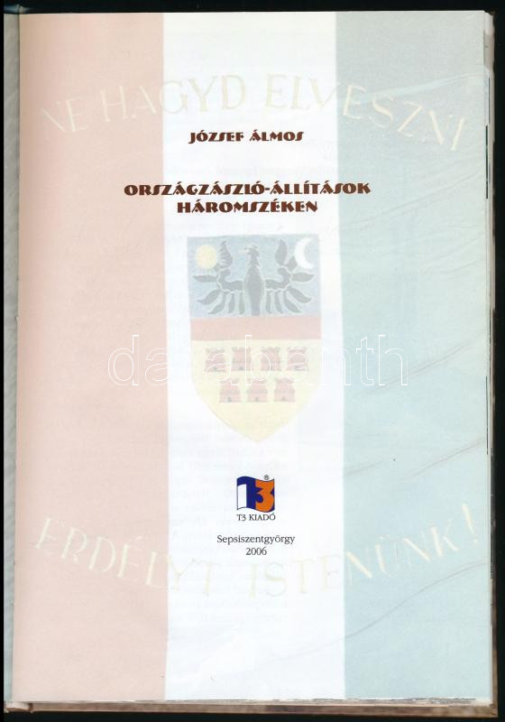 József Álmos: Országzászló-állítások Háromszéken. Sepsiszentgyörgy, 20... https://www.darabanth.com/hu/514-Filatelia-kepeslap-numizmatika-mutargy-konyv-papirregiseg-ekszer-aukcio/515.0/Konyvek/Konyvek-Utazas-helytortenet~614/Jozsef-Almos-Orszagzaszlo-allitasok-Haromszeken-Sepsiszentgyorgy-2006-T3-Kiado-Kiad~II3482506