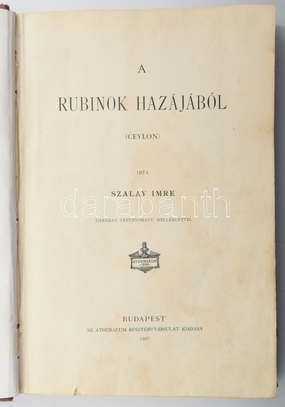 Szalay Imre: A rubinok hazájából (Ceylon). Bp., 1897, Athenaeum. Félvá... https://www.darabanth.com/hu/514-Filatelia-kepeslap-numizmatika-mutargy-konyv-papirregiseg-ekszer-aukcio/515.0/Konyvek/Konyvek-Utazas-helytortenet~614/Szalay-Imre-A-rubinok-hazajabol-Ceylon-Bp-1897-Athenaeum-Felvaszon-kotes-kopottas-a~II3477646