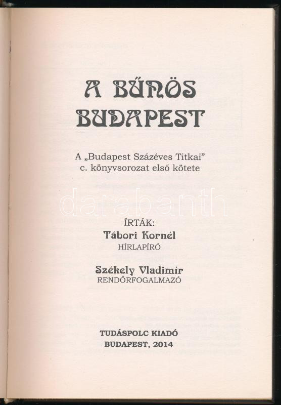 Tábori-Székely: A bűnös Budapest. Budapest Százéves Titkai. Bp., 2014,... https://www.darabanth.com/hu/514-Filatelia-kepeslap-numizmatika-mutargy-konyv-papirregiseg-ekszer-aukcio/515.0/Konyvek/Konyvek-Utazas-helytortenet~614/Tabori-Szekely-A-bunos-Budapest-Budapest-Szazeves-Titkai-Bp-2014-Tudaspolc-Kiado-Kiad~II3458777