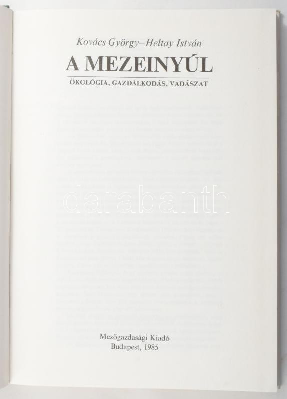 Kovács György - Heltay István: A mezei nyúl. Ökológia, gazdálkodás, va... https://www.darabanth.com/hu/514-Filatelia-kepeslap-numizmatika-mutargy-konyv-papirregiseg-ekszer-aukcio/515.0/Konyvek/Konyvek-Vadaszat~621/Kovacs-Gyorgy-Heltay-Istvan-A-mezei-nyul-Okologia-gazdalkodas-vadaszat-Bp-1985-M~II3475039