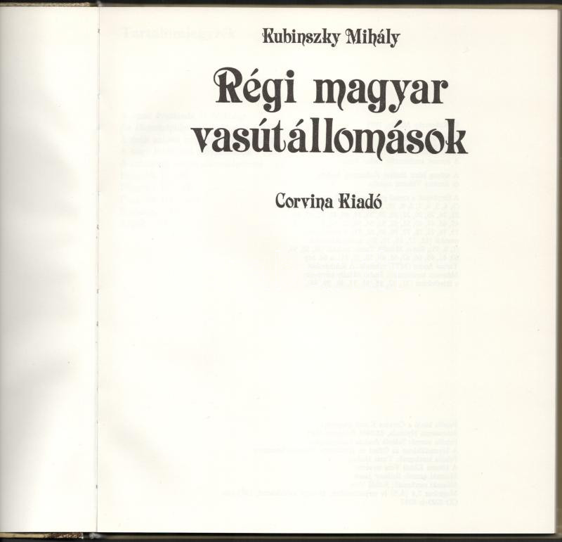 Kubinszky Mihály: Régi magyar vasútállomások. Építészeti hagyományok. Bp., 1983, Corvina. Fekete-fehér képekkel illusztrálva. Kiadói kartonált papírkötés, kissé vetemedett borítóval.