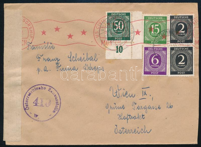 1947 Cenzúrázott levél Ausztriába / Censored cover to Austria https://www.darabanth.com/hu/514-Filatelia-kepeslap-numizmatika-mutargy-konyv-papirregiseg-ekszer-aukcio/515.0/Kulfoldi-filatelia-es-postatortenet/Nemetorszag-brit-amerikai-zona~471/1947-Cenzurazott-level-Ausztriaba-Censored-cover-to-Austria~II3422554