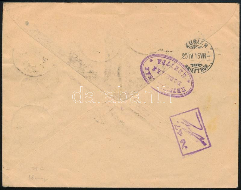 Leírás: 1915 Ajánlott levél Zürichbe / Registered cover to Zürich