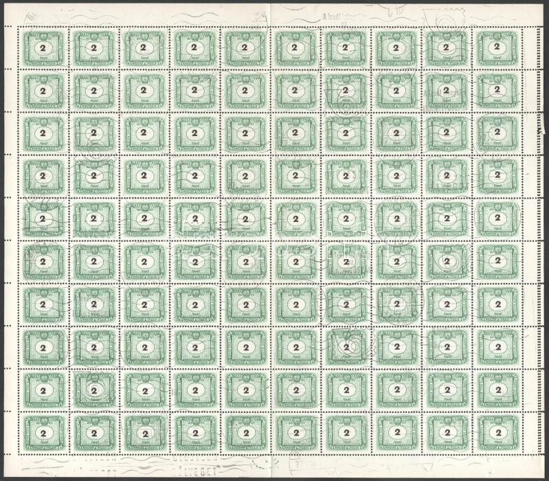 Leírás: 1953 50 éves a magyar portóbélyeg 2Ft kis számjeggyel teljes hajtott ívben, az ívszélen dupla fogazás