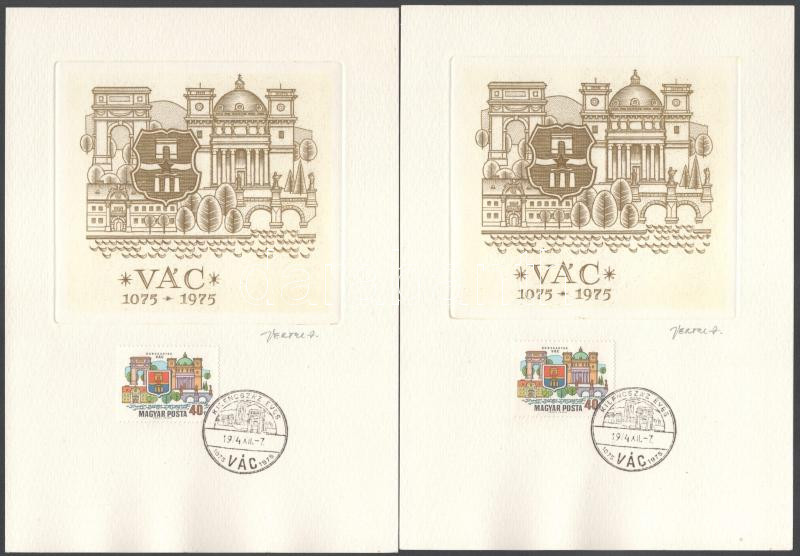 Leírás: 1975 Vác 900 éves 2 db rézkarc emléklap a tervező Vertel József aláírásával