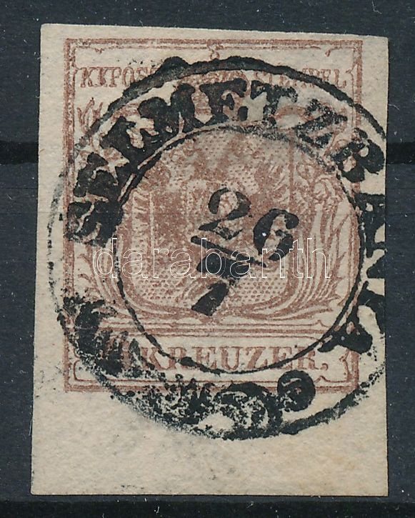 Leírás: 1850 6kr HP III ívszéli nyomat nagy alsó ívszéllel "SELMETZBÁNYA"