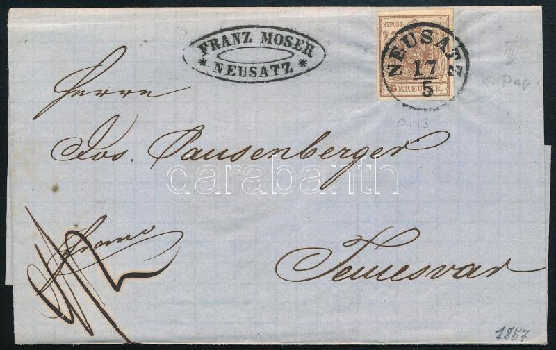 1857 6kr MP III ívszéli nyomat levélen "NEUSATZ" - "TEM... https://www.darabanth.com/hu/514-Filatelia-kepeslap-numizmatika-mutargy-konyv-papirregiseg-ekszer-aukcio/515.0/Magyar-filatelia-es-postatortenet/Az-1850-es-kiadas~18/1857-6kr-MP-III-ivszeli-nyomat-levelen-NEUSATZ-TEMESVAR~II3465034