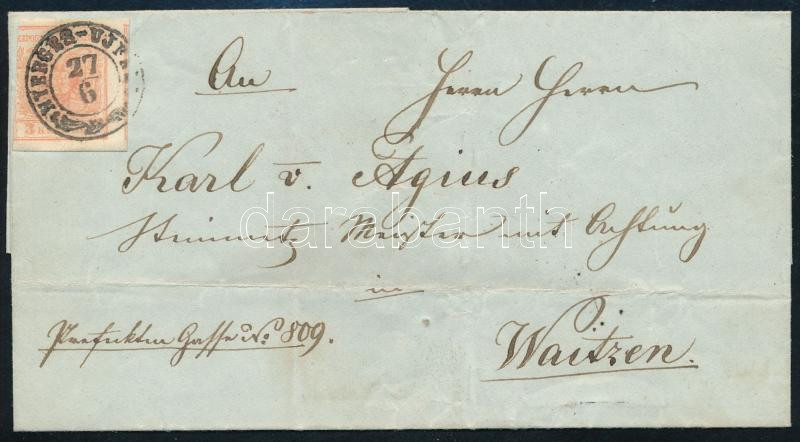 ~1855 3kr levélen "NYERGES-ÚJFALU" - Waitzen https://www.darabanth.com/hu/514-Filatelia-kepeslap-numizmatika-mutargy-konyv-papirregiseg-ekszer-aukcio/515.0/Magyar-filatelia-es-postatortenet/Az-1850-es-kiadas~18/7E1855-3kr-levelen-NYERGES-UJFALU-Waitzen~II3437408