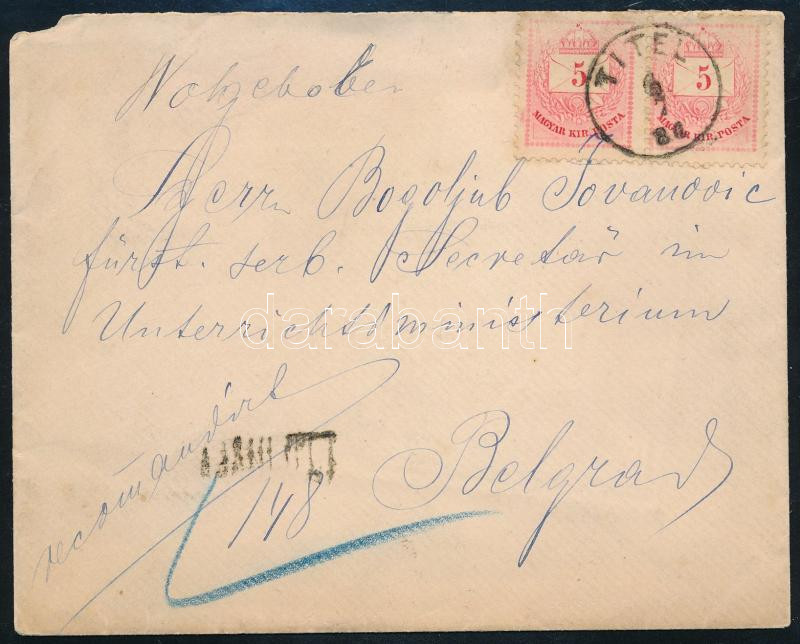 1881 Ajánlott levél 4 x 5kr bérmentesítéssel "TITEL" - Belgr... https://www.darabanth.com/hu/514-Filatelia-kepeslap-numizmatika-mutargy-konyv-papirregiseg-ekszer-aukcio/515.0/Magyar-filatelia-es-postatortenet/Az-1874-1899-kozotti-krajcaros-kiadasok~35/1881-Ajanlott-level-4-x-5kr-bermentesitessel-TITEL-Belgrad~II3478842