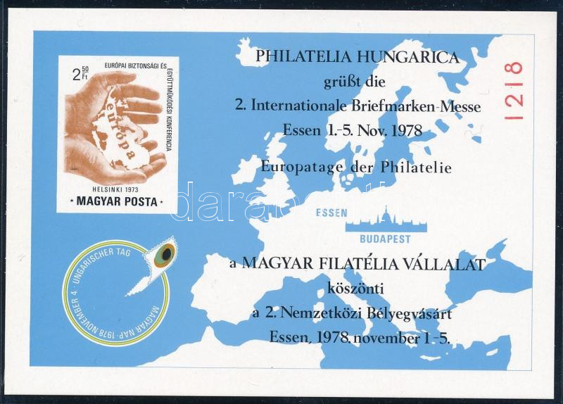 Leírás: 1978 PHILATELIA HUNGARICA Essen karton emlékív piros 1218 sorszámmal