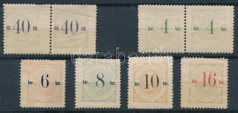 Leírás: ca 1900 Budapesti Polgári Lövészegylet 6 klf érték tagdíj bélyeg (40f-16K)