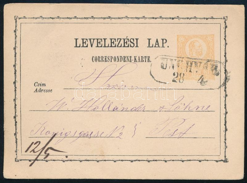 Leírás: 1871 2kr díjjegyes levelezőlap / PS-card "UNGHVÁR" - Pest