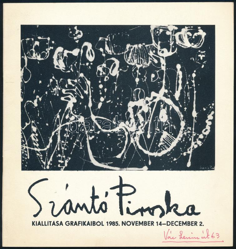 Leírás: Szántó Piroska kiállítása grafikáiból 1985, saját kézzel írt címmel