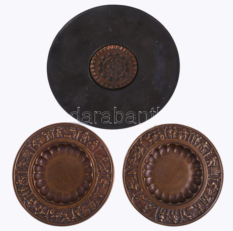 Leírás: 3 darab réz / bronz iparművész dísztál, d: 14-19 cm