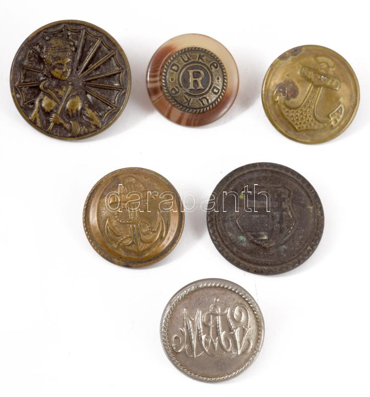 6 darab régi gomb, militária darabokkal. https://www.darabanth.com/hu/514-Filatelia-kepeslap-numizmatika-mutargy-konyv-papirregiseg-ekszer-aukcio/515.0/Mutargy-papirregiseg-egyeb/Bolhapiac~92/6-darab-regi-gomb-militaria-darabokkal~II3459647