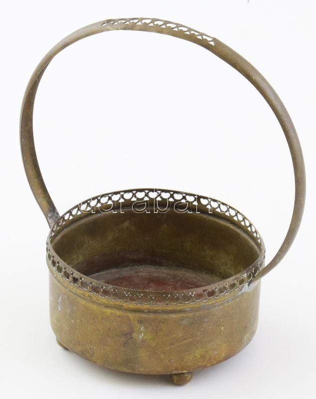 Leírás: Antik réz kínáló, 4 lábon, kis deformálódással, m: 18 cm