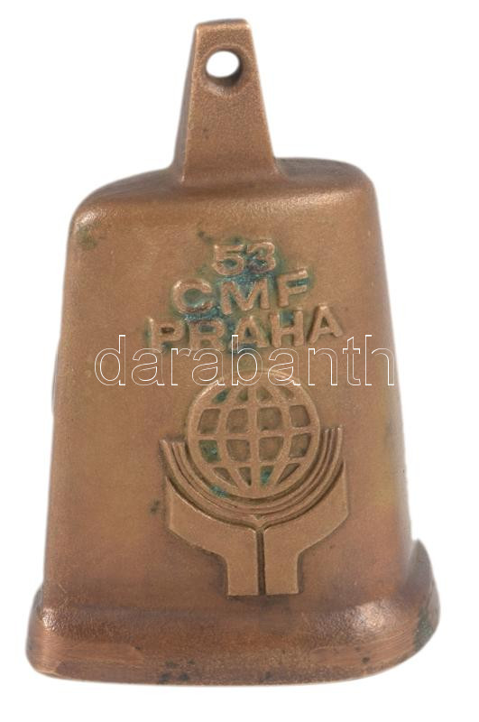 Bronz csengő "53 CMF Praha" feliratos, m: 10 cm https://www.darabanth.com/hu/514-Filatelia-kepeslap-numizmatika-mutargy-konyv-papirregiseg-ekszer-aukcio/515.0/Mutargy-papirregiseg-egyeb/Bolhapiac~92/Bronz-csengo-53-CMF-Praha-feliratos-m-10-cm~II3461261