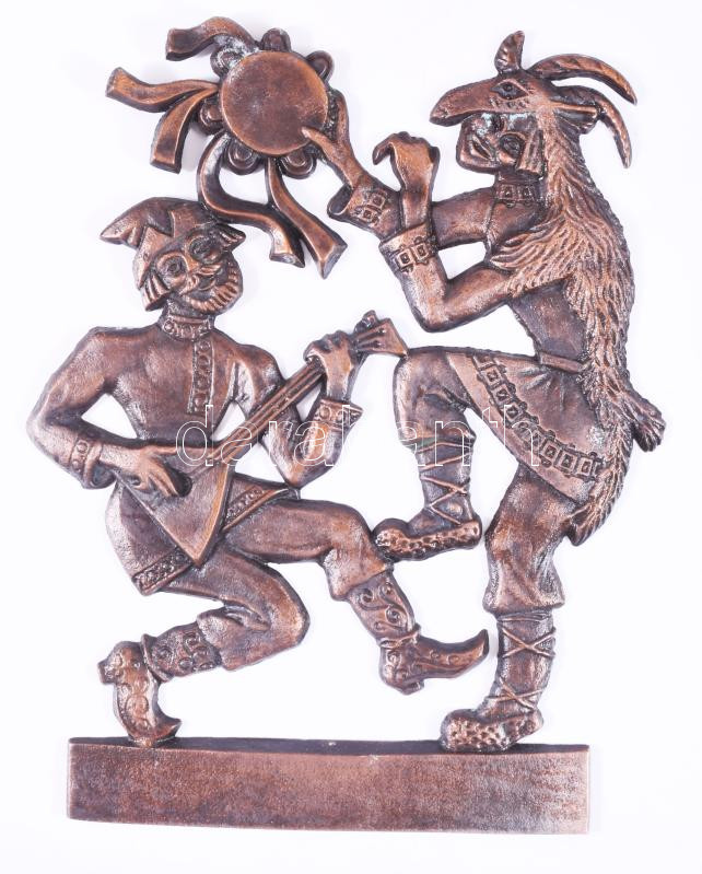 Leírás: Busójárást ábrázoló bronzírozott fém dísz, 22x18 cm